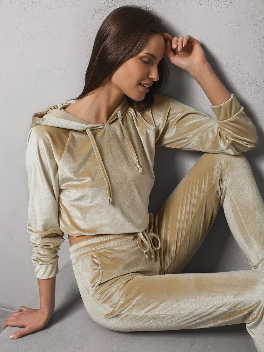 This women's tracksuit is suitable not only for training but also for active leisure. The set includes trousers and a sweatshirt.