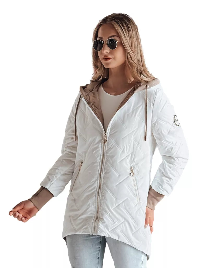 A fashionable women's jacket that combines comfort with elegance. It fastens with a zipper and has a practical, non-removable hood adjustable with drawstrings. There are two pockets with a zipper. Lightweight insulation ensures comfort on colder days. Sleeves with cuffs for a better fit. Perfect for the transitional season.
