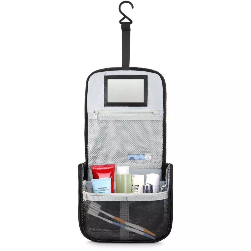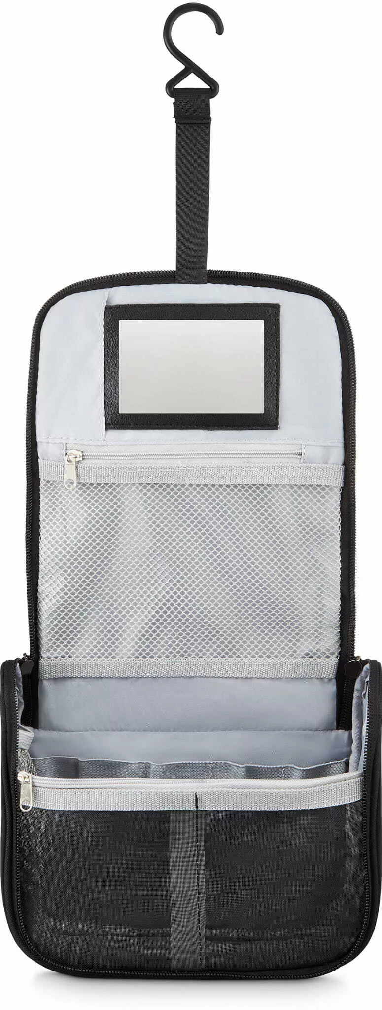 Looking for a vanity case that can hold all your cosmetics? Our Zagatto® vanity cases from the Voyager collection are a great choice! You no longer have to worry about running out of space in your vanity case. Everything is organized and within easy reach. You can hang the vanity case itself on a hook. Material: high-quality Cordura, lining made of dirt- and damage-resistant polyester. Zipper color: black Number of pockets: 3. Small, practical mirror. Hook for hanging, e.g. in the shower. Handle for comfortable carrying.