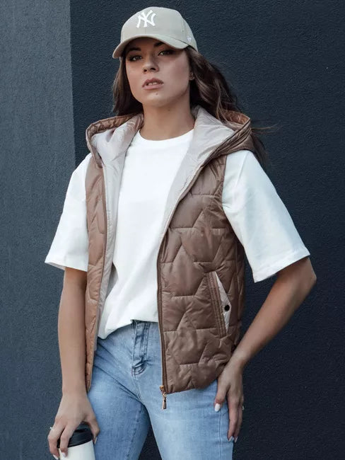 This quilted asymmetric vest is the perfect addition to many spring outfits. With a fixed hood, full-length zipper and two practical pockets, it is both stylish and comfortable. The subtle padding is perfect for cooler days, providing an extra layer of warmth. Available in two elegant colors, this vest will become a must-have for your spring wardrobe.