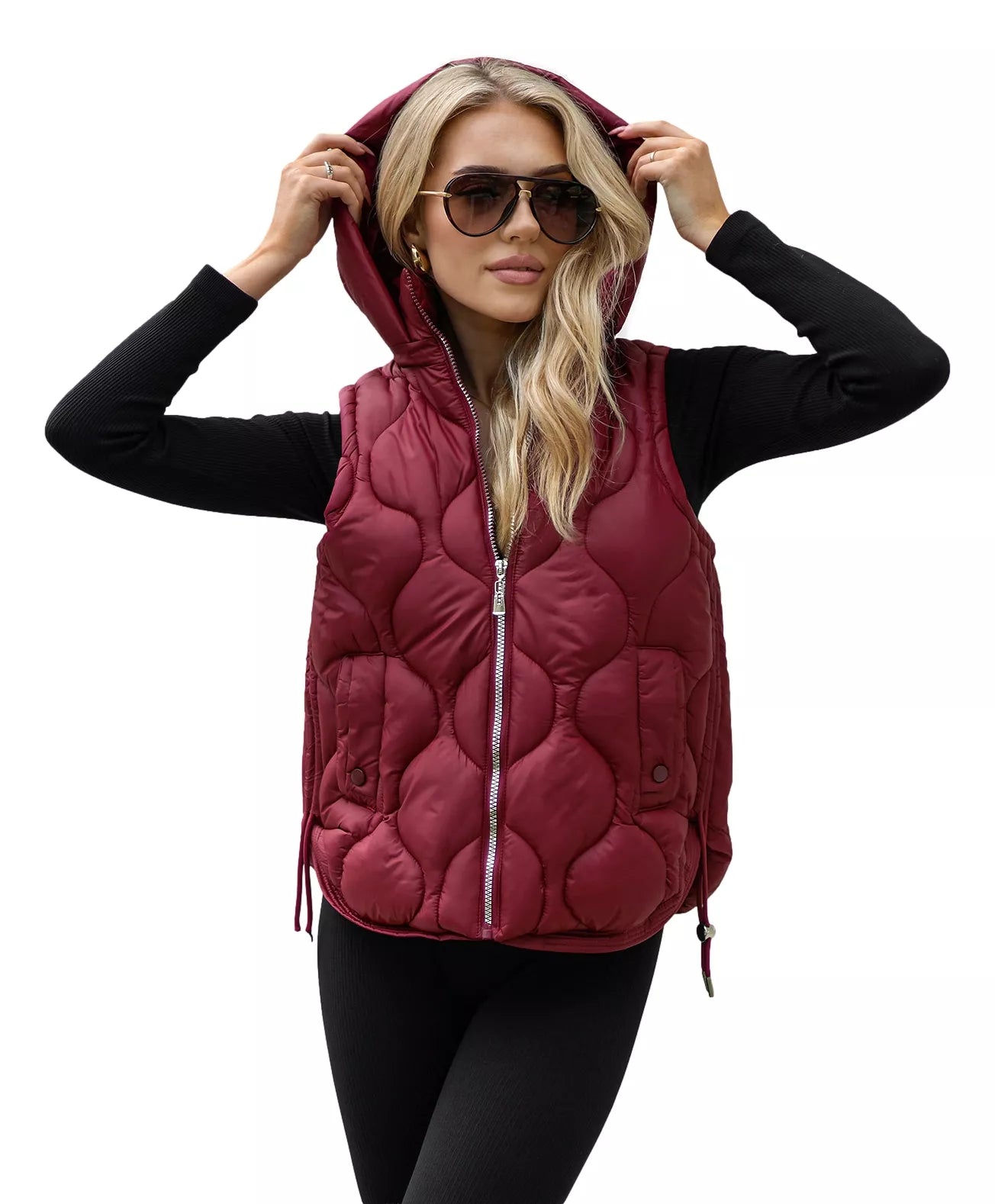 Women's quilted vest with zipper and hood