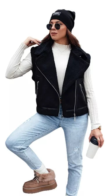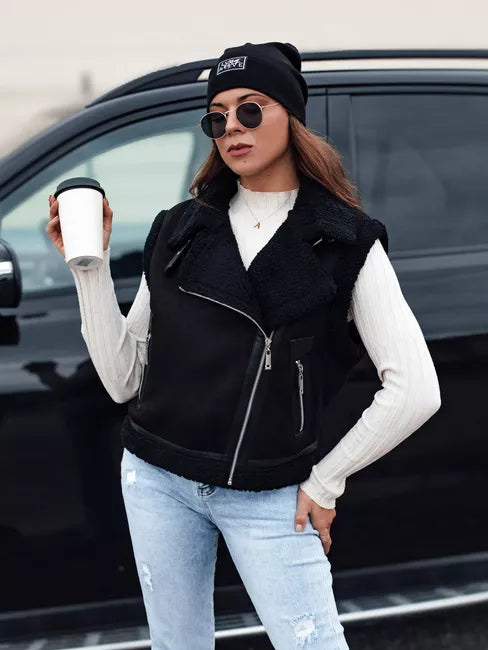 This suede vest with a sheepskin lining combines comfort and style, perfect for cooler days. The soft suede texture and pleasant-to-the-touch sheepskin lining add warmth and elegance to any outfit. Functional side zippers not only make it easy to put on, but also give the vest a modern, minimalist look. A great choice for walks around the city when you want a fashionable look without sacrificing comfort.
