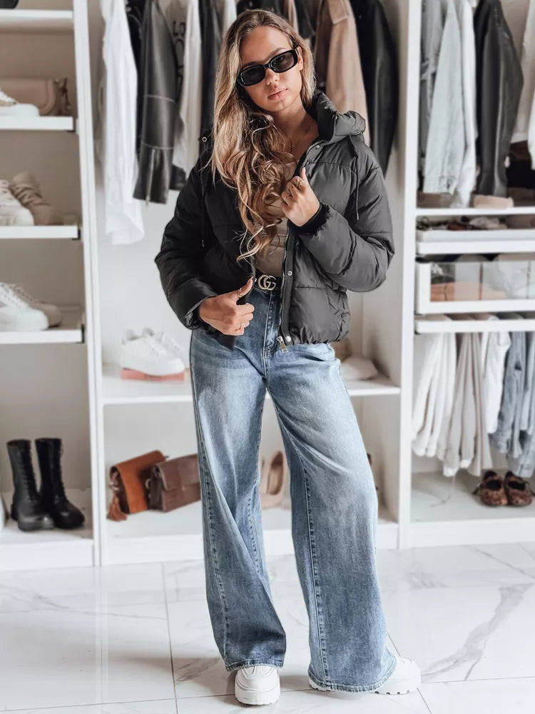 This women's winter jacket with quilting and a practical hood is perfect for cold days. Convenient fastening and insulation ensure comfort. The versatile puffy style goes well with casual outfits. A must-have for the winter season.