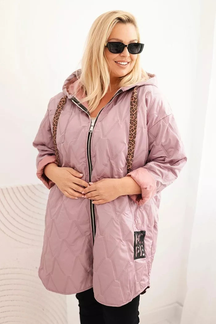 This stylish women's quilted jacket is suitable for women wearing larger sizes - from XL to 4XL . The loose, oversized cut ensures maximum comfort and fits perfectly, without restricting movement. The model features geometric quilting, which visually slims the silhouette, and a fashionable leopard-print hood with drawstring. The zipper and practical chest pocket emphasize the modern and functional character of the jacket. This is a great choice for cooler days - it goes well with jeans and ankle boots, as well as with sports leggings and sneakers. Perfect for everyday wear: for a walk, shopping, work or a weekend trip.