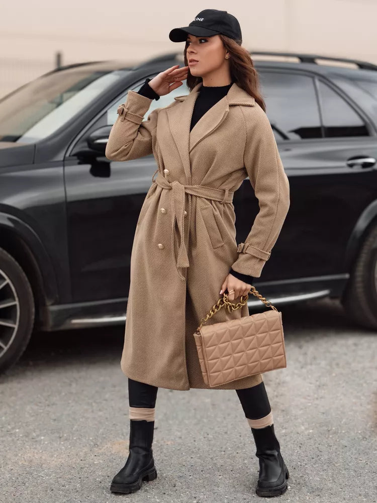A stylish tie-up coat, perfect for colder days. Thanks to its elegant cut and carefully selected details, it is perfect for both casual and elegant styles. The waist belt emphasizes the figure, and the quality material ensures comfort and elegance every day.