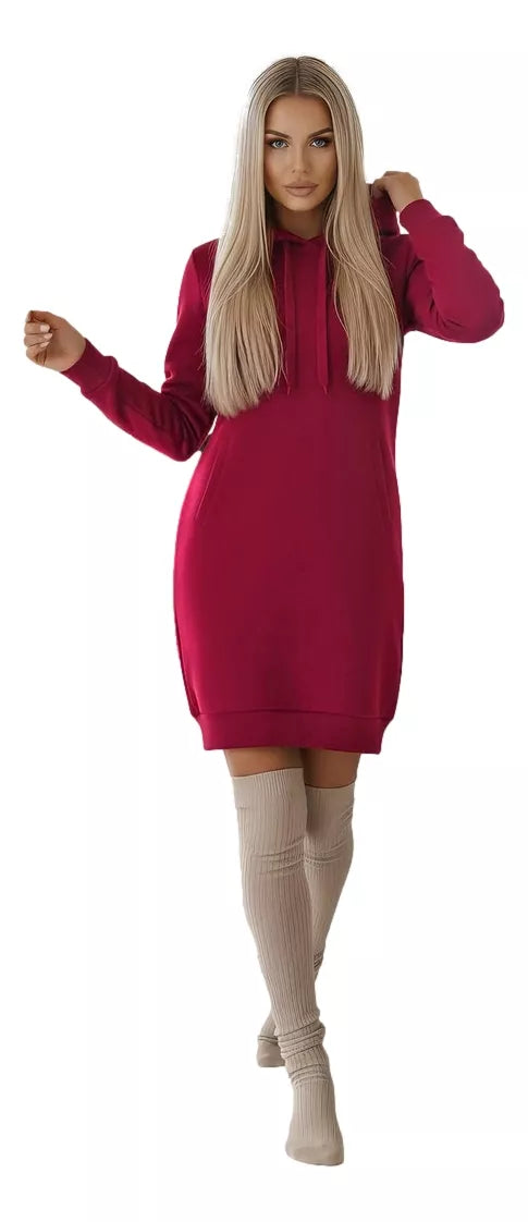 Women's casual dress with a hood. Can be worn in both summer and winter. Goes well with casual shoes or sandals.