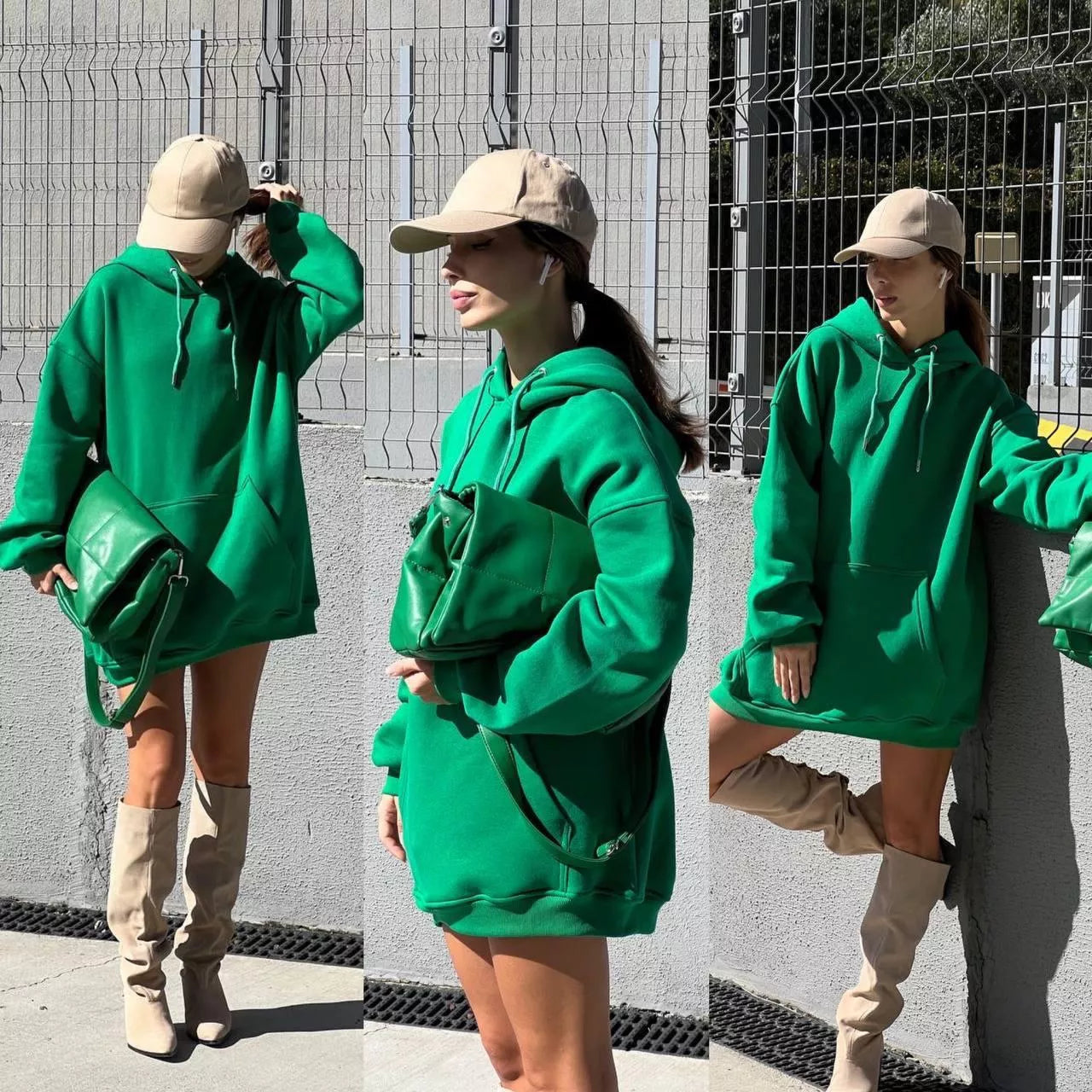 Women's casual dress with a hood - tunic. Suitable for all seasons. Suitable for both casual and classic footwear.