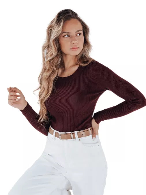 Why is it worth having? Ribbed material – highlights the silhouette and looks elegant Round neckline – a classic solution that suits any style. Fitted cut – fits perfectly to the body and does not restrict movement Elastic knitted fabric – ensures comfort and convenience when wearing This sweater is a versatile base for many outfit combinations - it looks great with both high-waisted pants and a pencil skirt. It's a great choice for colder days, combining comfort with a fashionable look.