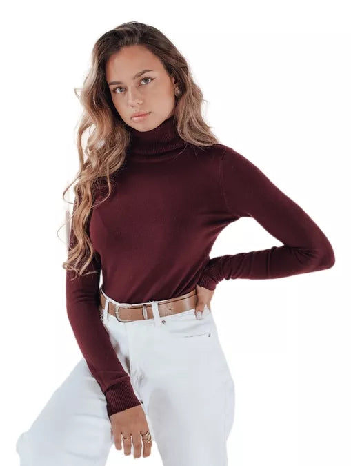 This turtleneck sweater is a classic choice for cooler days. The soft, stretchy fabric and tight cut flatter your figure, while ribbed cuffs ensure comfort. Perfect for both casual and semi-formal wear. This women's turtleneck is a versatile base for many styles - it goes well with jeans, skirts and elegant trousers. The turtleneck not only warms, but also adds elegance. The stretchy knit fabric adapts to the figure without feeling tight.