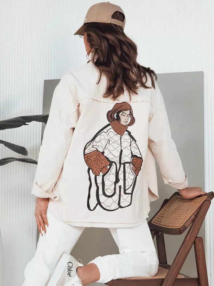 The denim jacket is the essence of urban design with a bold accent. Comfortable, with a snap closure and two functional pockets, it's the perfect base for your everyday and weekend outfits. The sleeves can be buttoned up for a chic look, and the frayed hem gives the jacket a casual feel. The unique graphic on the back is a clear accent that will take your outfit to the next level of style.