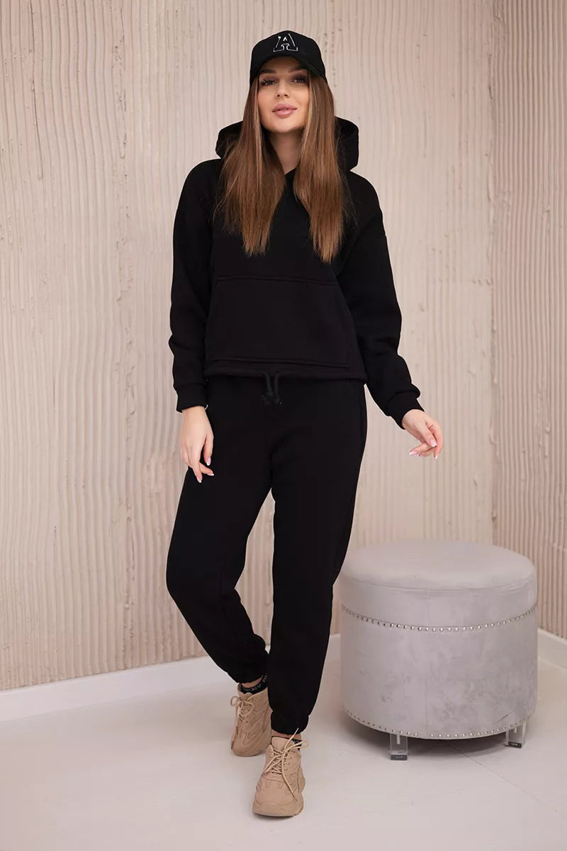 Introducing our insulated sweatshirt and pants set. The sweatshirt has a hood and drawstring at the bottom. The pants have pockets. The size is universal and fits women's sizes S, M, or L.