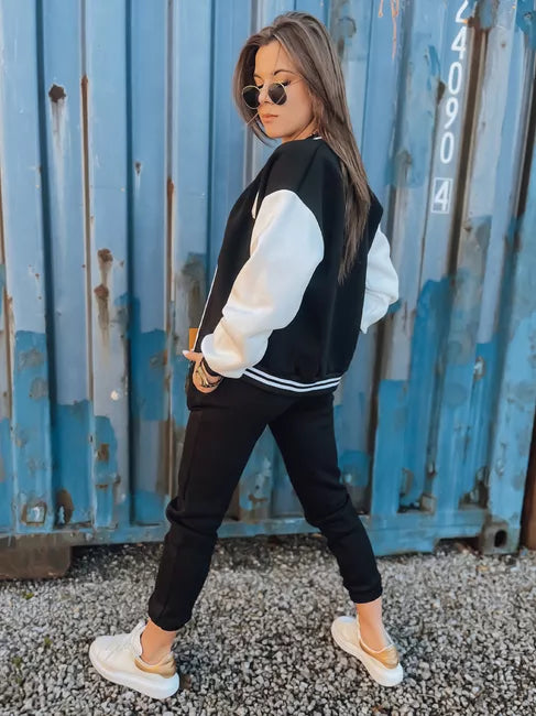 A stylish and sporty outfit for women who appreciate both comfort and playful design. This combination, featuring a sporty bomber jacket and trousers, is perfect for both active leisure and creating a city style.
