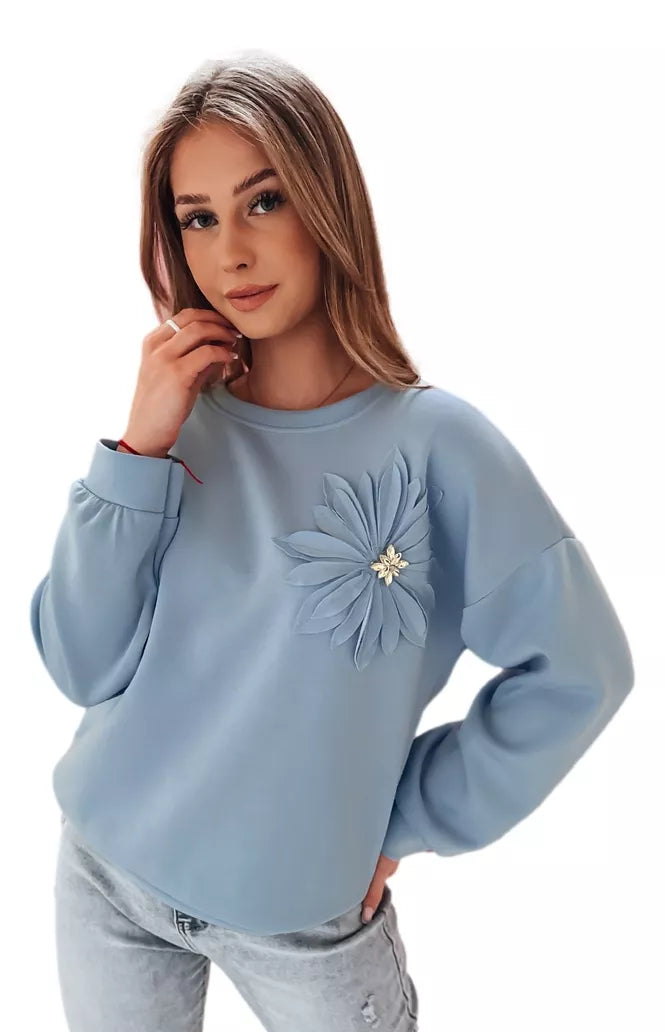 A feminine sweater with a floral accent that combines comfort with romantic style. The soft material ensures comfort while the striking flower-shaped appliqué gives it a unique character. The loose cut goes perfectly with jeans or a skirt, creating a fashionable and subtly elegant style.