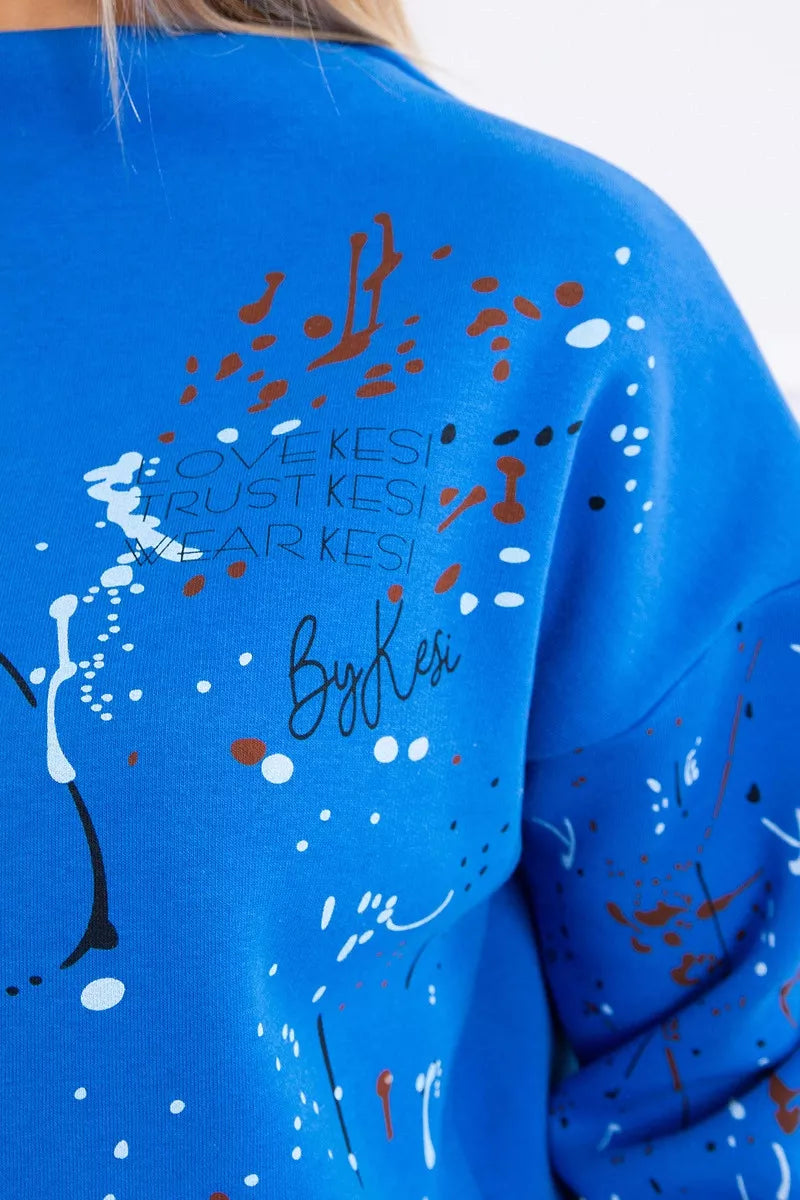 Insulated sweatshirt and pants set. Sweatshirt and pants with a colorful pattern. If you like to stand out from the crowd, this set is perfect for you. The size is universal and fits women wearing sizes S, M, or L.