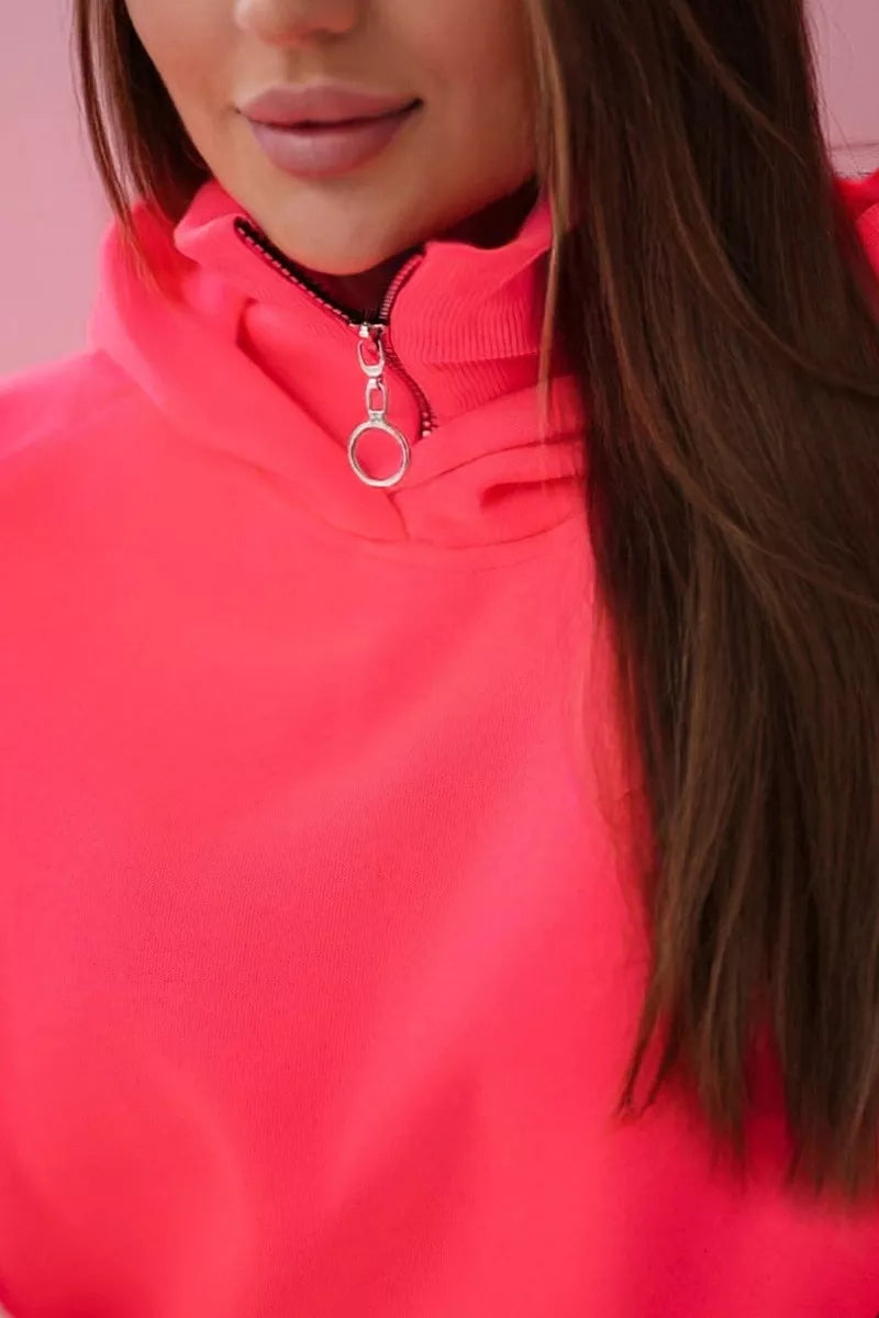 Introducing our sweatshirt and pants set. The sweatshirt features a hood and turtleneck. The pants have an elastic waistband. The set is made from insulated material. The size is universal and fits women's sizes S, M, or L.