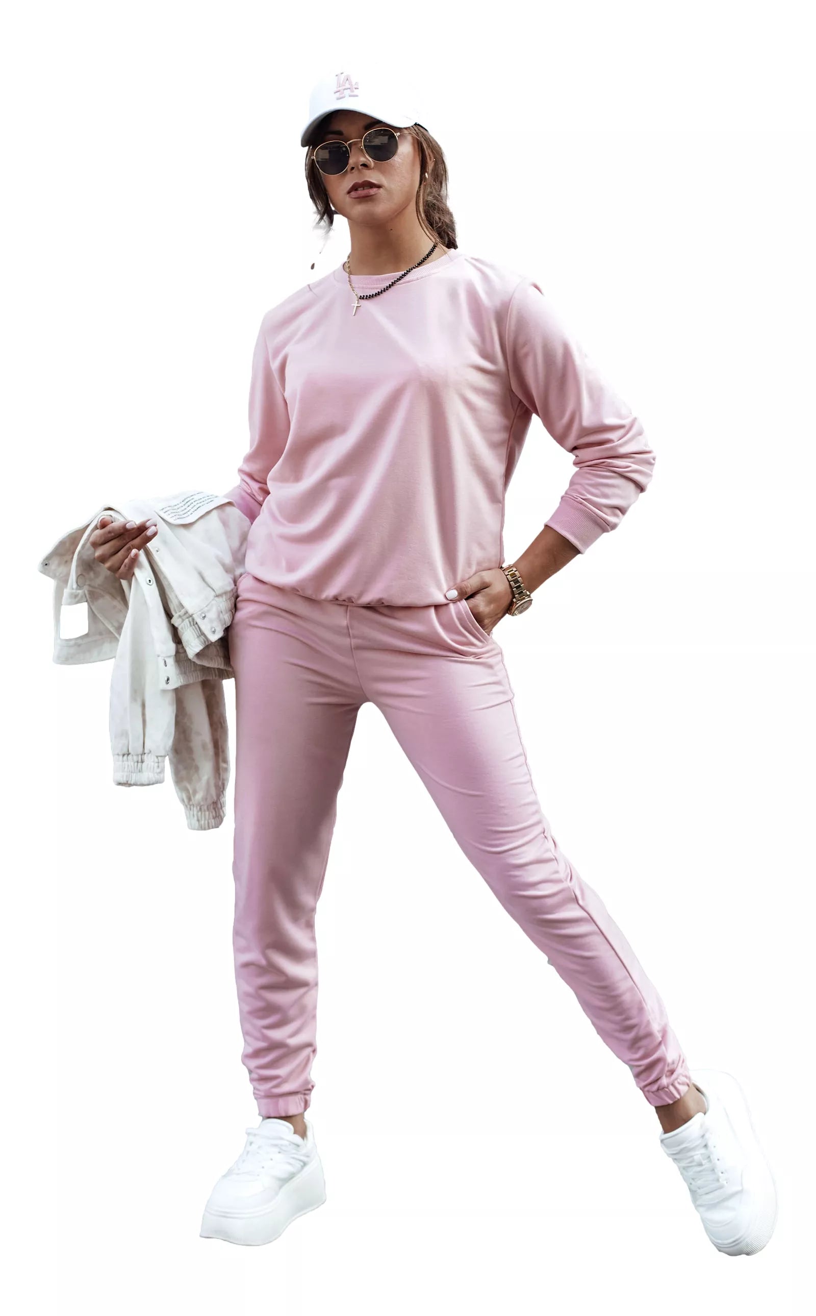 A women's tracksuit set is a combination of comfort and style, perfect for any occasion. Made from soft material, it guarantees all-day comfort. Ideal for everyday outings and relaxing at home. The modern cut accentuates the figure, while the minimalist design allows for easy mixing and matching with other wardrobe items.