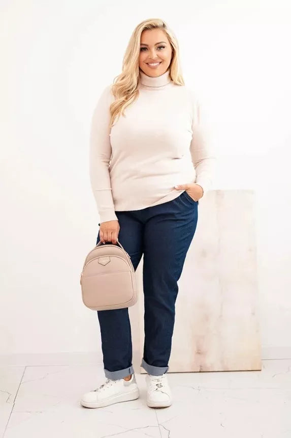 This stylish plus size women's viscose sweater is a great choice for women who value comfort and elegance. Made from a soft blend of materials including modal and nylon, it ensures comfort, freedom of movement and durability. Featuring long sleeves and a classic round collar, the model is perfect for cooler days, and goes well with jeans, trousers or skirts. This timeless piece will become the basis of many outfits - from casual to more elegant. The oversized dress is perfect for women wearing sizes XL to 4XL. The model usually wears a size 3XL/4XL.