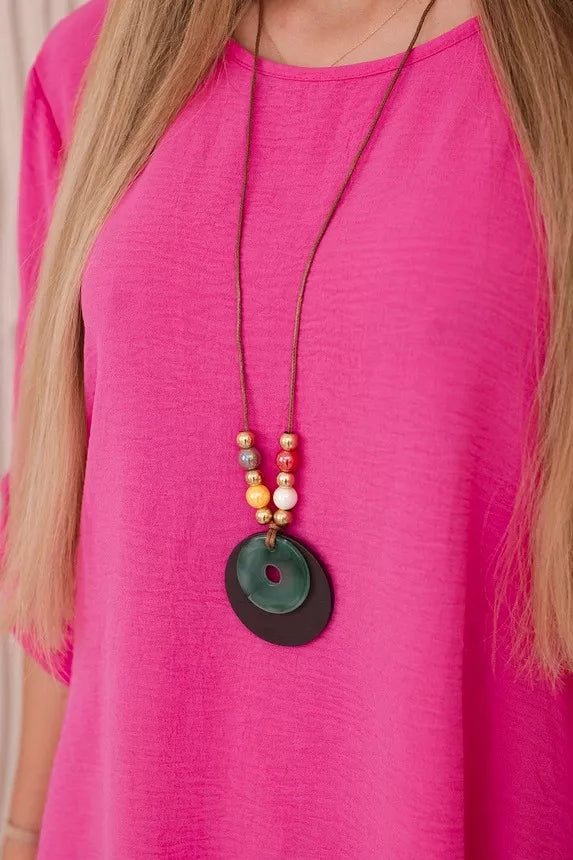This Italian two-piece set, consisting of a flared blouse and trousers, is an elegant ensemble that adds charm and style to any look. The flared blouse offers subtle femininity, accentuates the figure, and ensures freedom of movement. The classic cut of the trousers perfectly complements the elegant blouse, creating a harmonious and stylish whole. Furthermore, the key-shaped pendant is a charming detail that adds originality and character to this set, creating a harmonious composition. It's an elegant accessory that emphasizes uniqueness and attention to detail throughout the style. This Italian set is perfect for various occasions – from business meetings to romantic dates. It's a sophisticated choice for those who appreciate elegance and comfort in one. The size is universal and fits women wearing sizes S, M, or L.