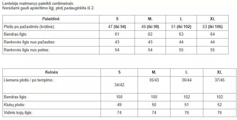The size chart is in the photo gallery; the dimensions in the chart are in centimeters.