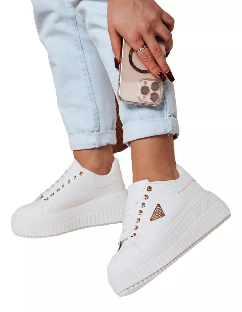Women's casual shoes made of eco-leather, fabric insoles. The model has a classic lace-up fastening and is decorated with diamonds. Perfect for many styles, emphasizing the unique character of each piece.