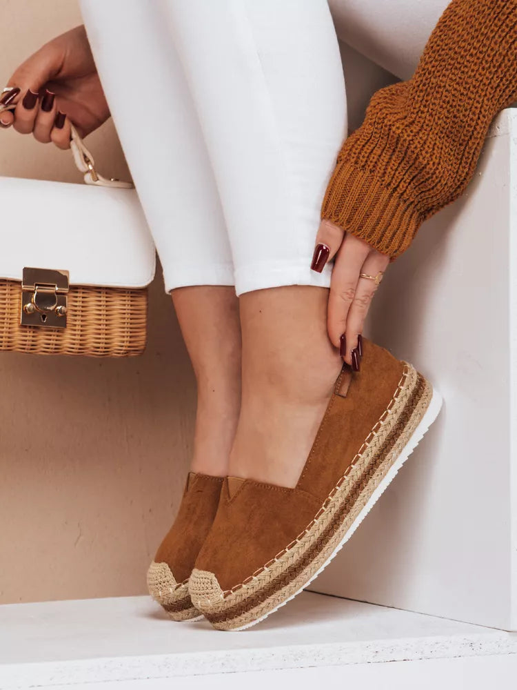 Unique casual shoes made of eco-friendly suede. On a high platform, covered with braid and rubber sole. Inside is lined with fabric, under the heel there is a leather insert. Shoes that stretch the foot, are light. They look beautiful. The size is normal. We recommend choosing the size you usually wear