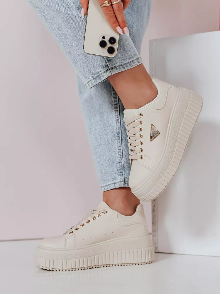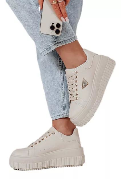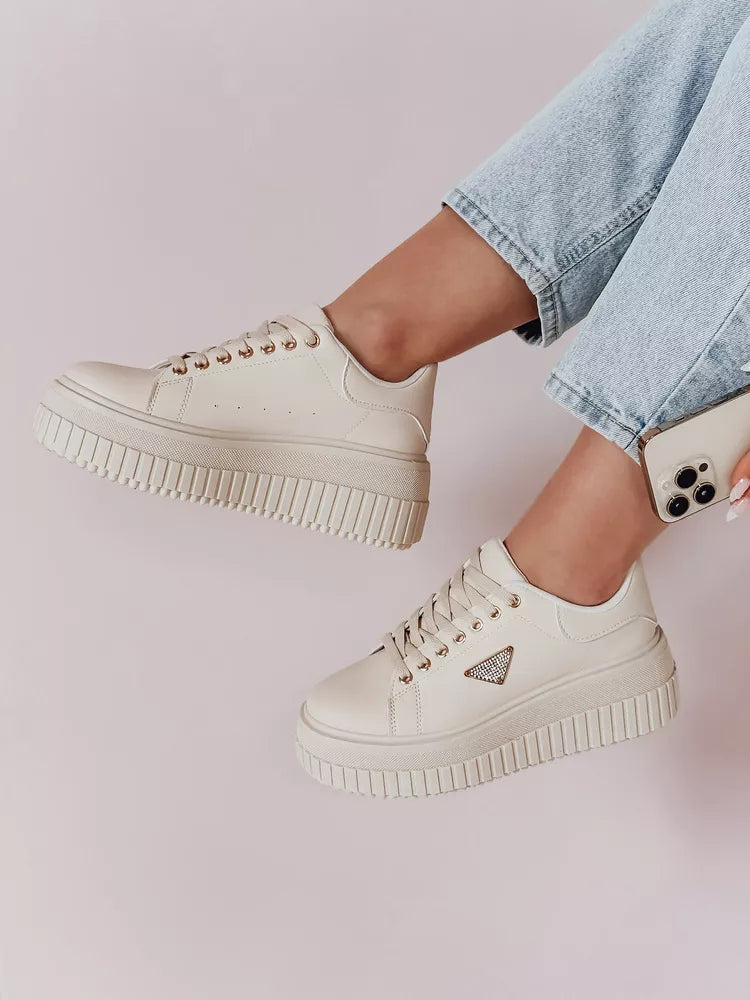 Women's casual shoes made of eco-leather, fabric insoles. The model has a classic lace-up fastening and is decorated with diamonds. Perfect for many styles, emphasizing the unique character of each piece.