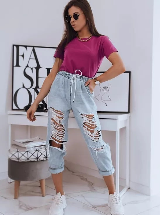 Women's T-shirt from the latest collection, with a round neck. Material: 50% cotton, 50% polyester. Model (183 CM 80 kg) is wearing L.