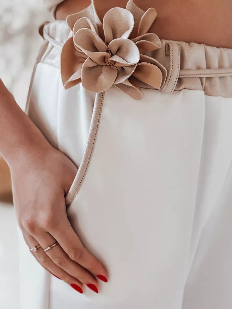 Women's casual straight-leg trousers are a combination of comfort and elegance. The elastic waistband ensures comfort, and the decorative lace with flowers adds uniqueness. Classic pockets emphasize charm, and the high waist beautifully shapes the silhouette. Perfect for everyday style.