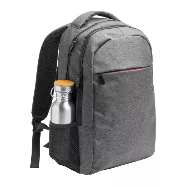 Stylish and functional backpack with a subtle red accent - a great choice for work, study or everyday use. Modern design combines with practical features: a spacious main compartment with a zipper, a front pocket for quick access to frequently used items, two side mesh pockets for a water bottle or small items. Padded adjustable straps and a comfortable handle on the top ensure comfort when carrying. Extremely convenient and compact - ideal for an active lifestyle or a professional image. Water resistant