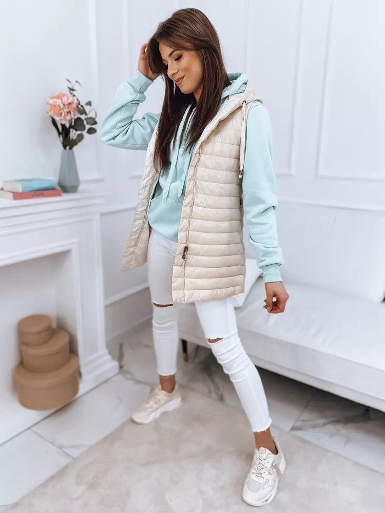 A longer-cut vest that perfectly complements the style of clothing. It has two pockets on the sides, which are fastened with zippers. The model is reversible, so we can wear it in two ways.