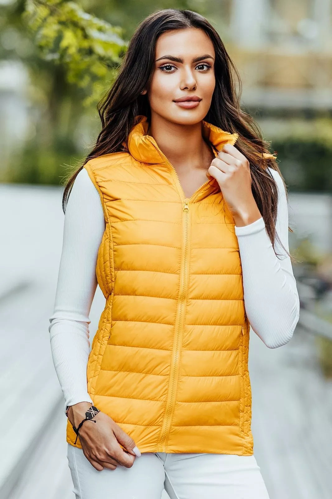 Women's vest with pockets without a hood.