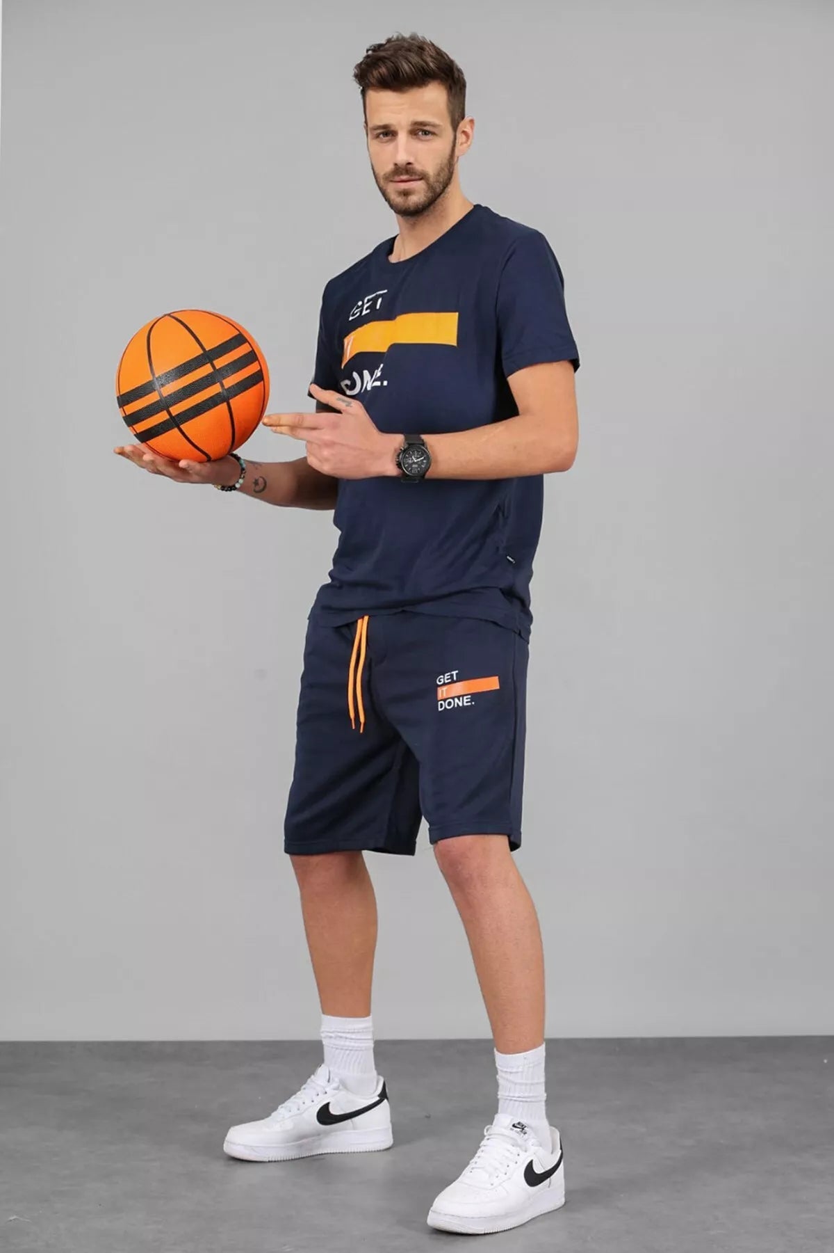 Men's short-sleeved set. The set includes a t-shirt and shorts.