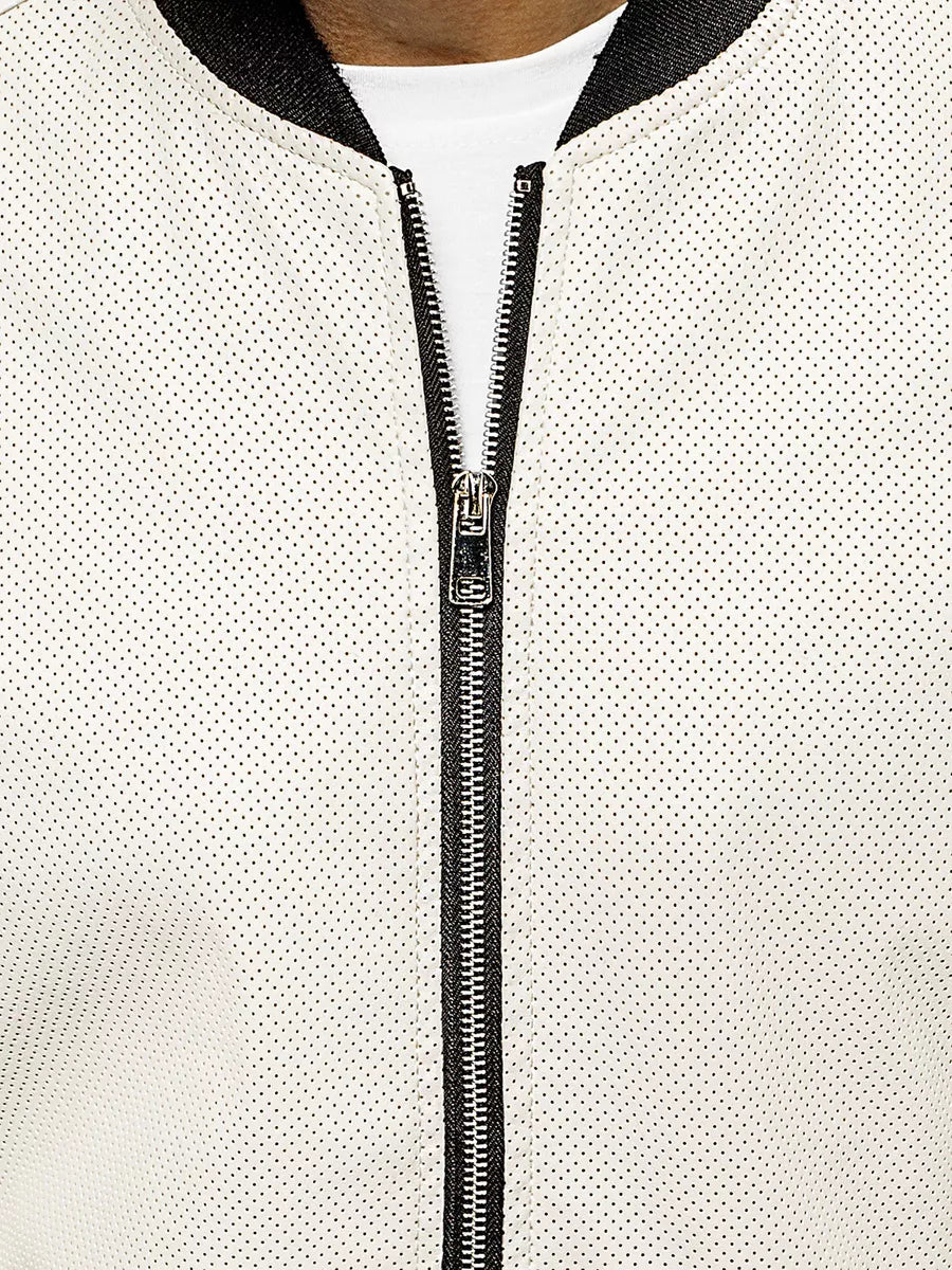 Men's eco-leather jacket with zipper closure. The jacket has two pockets with zippers.