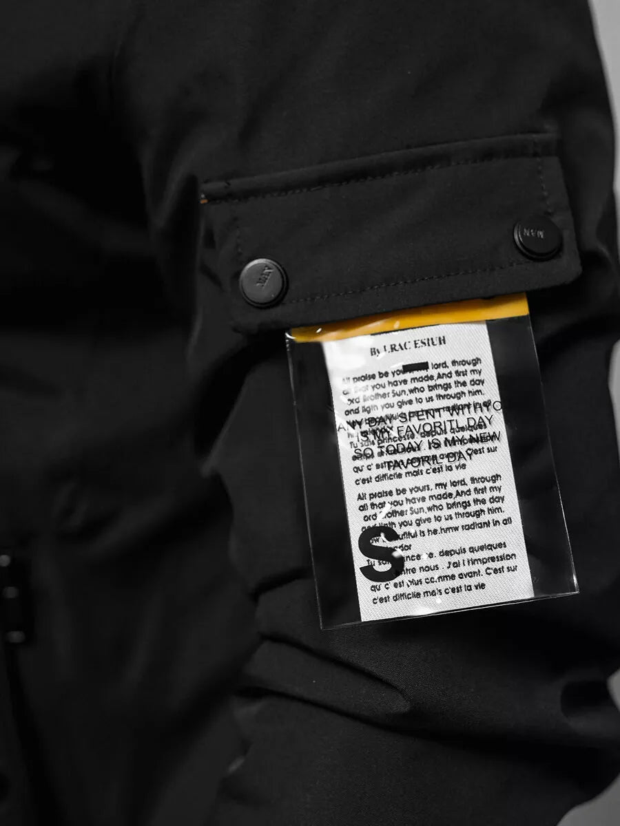Men's spring jacket without a hood. Jacket with pockets that close with press studs. There is an additional pocket inside the jacket.