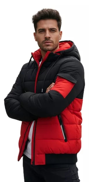 This sporty men's quilted jacket combines functionality and comfort for everyday wear. The thicker lining protects against the cold, while the contrasting color scheme creates a modern look. Perfect for winter days and urban style. This jacket is made of durable polyester, which provides excellent protection against wind and moisture. The warm lining ensures comfort on cold days, and the removable, adjustable hood increases functionality. Elastic cuffs ensure a sporty, fitted look.