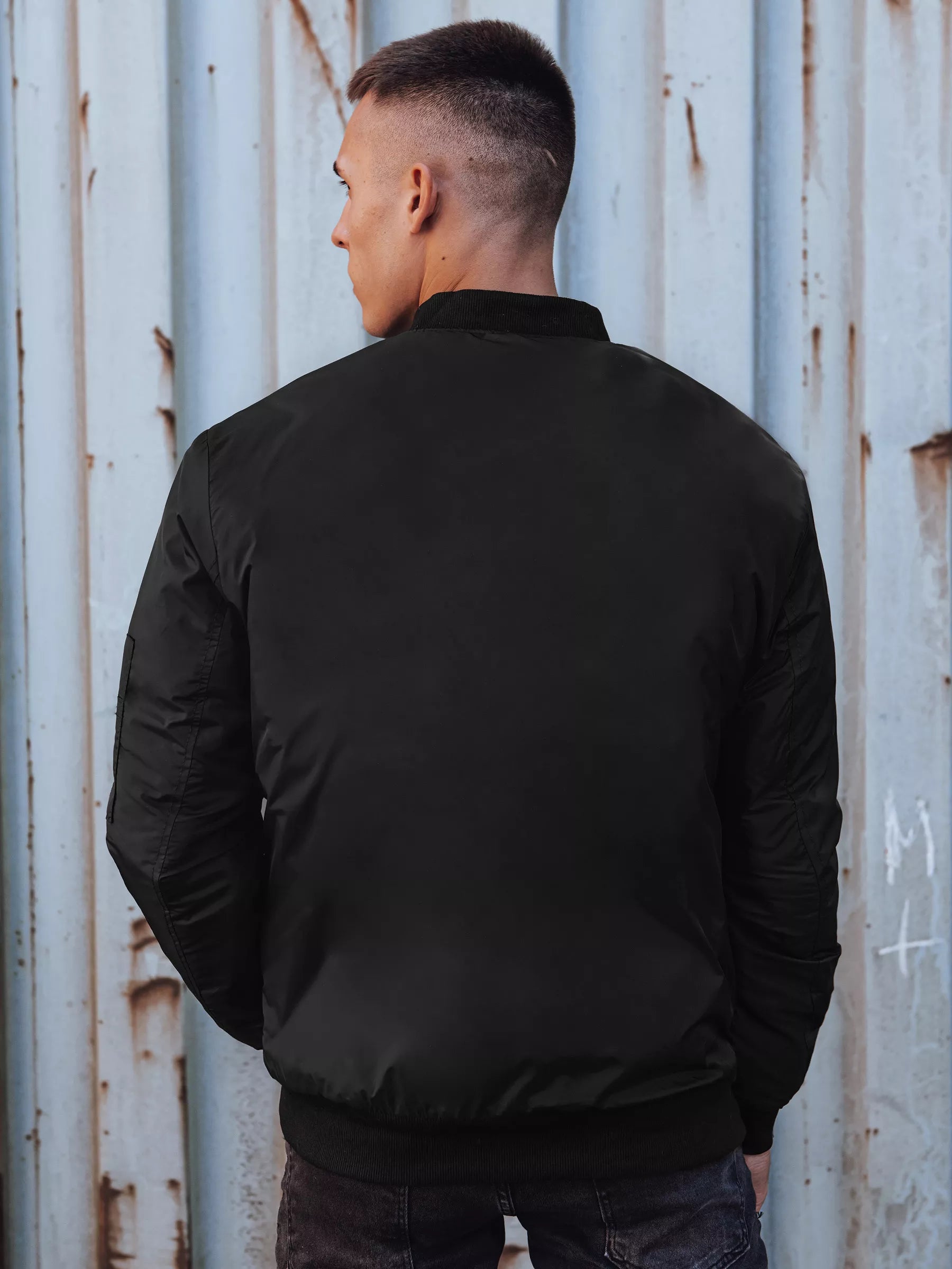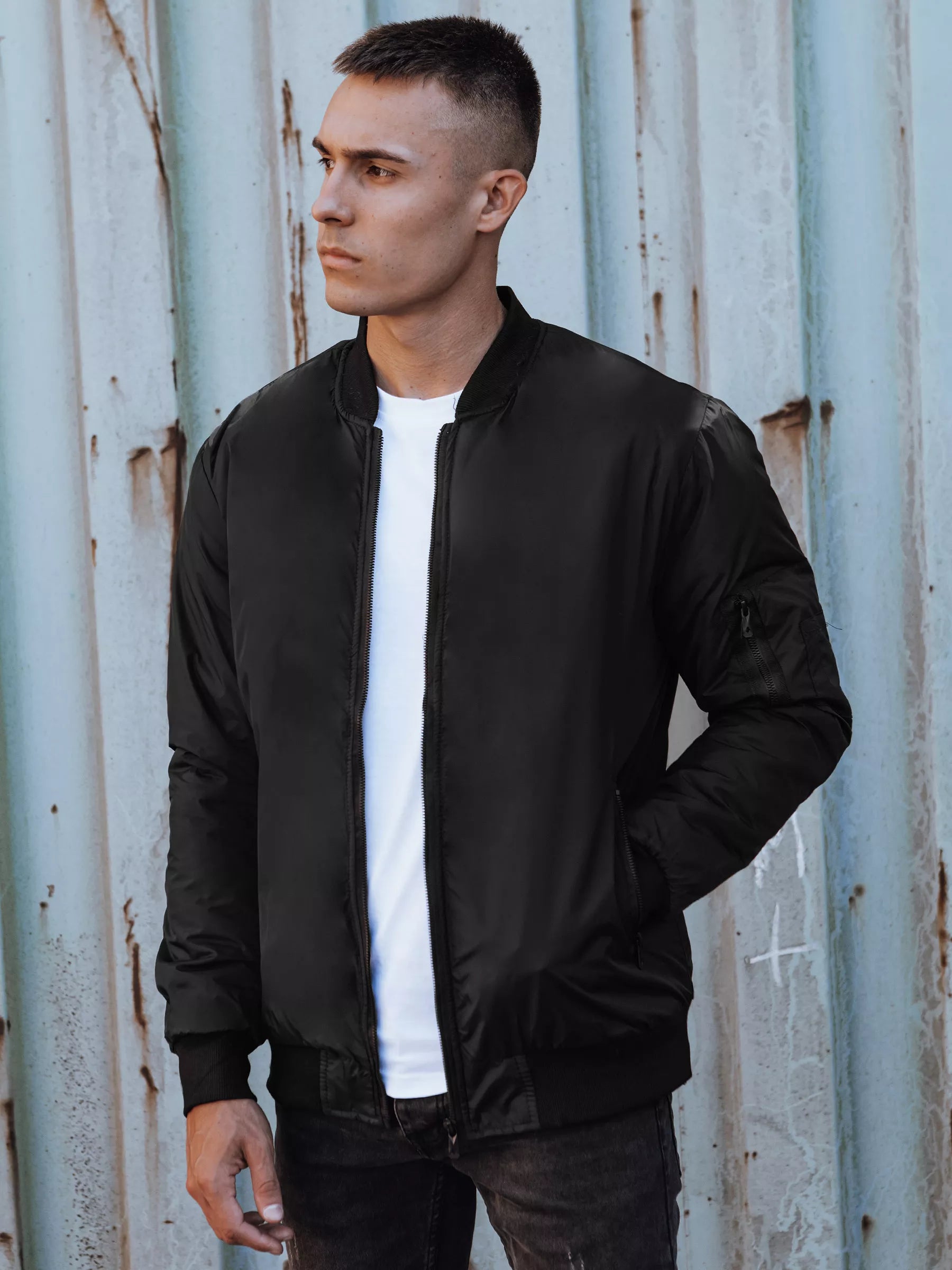 Men's spring jacket without a hood. The jacket is fastened with a zipper. The pockets are also fastened with a zipper.
