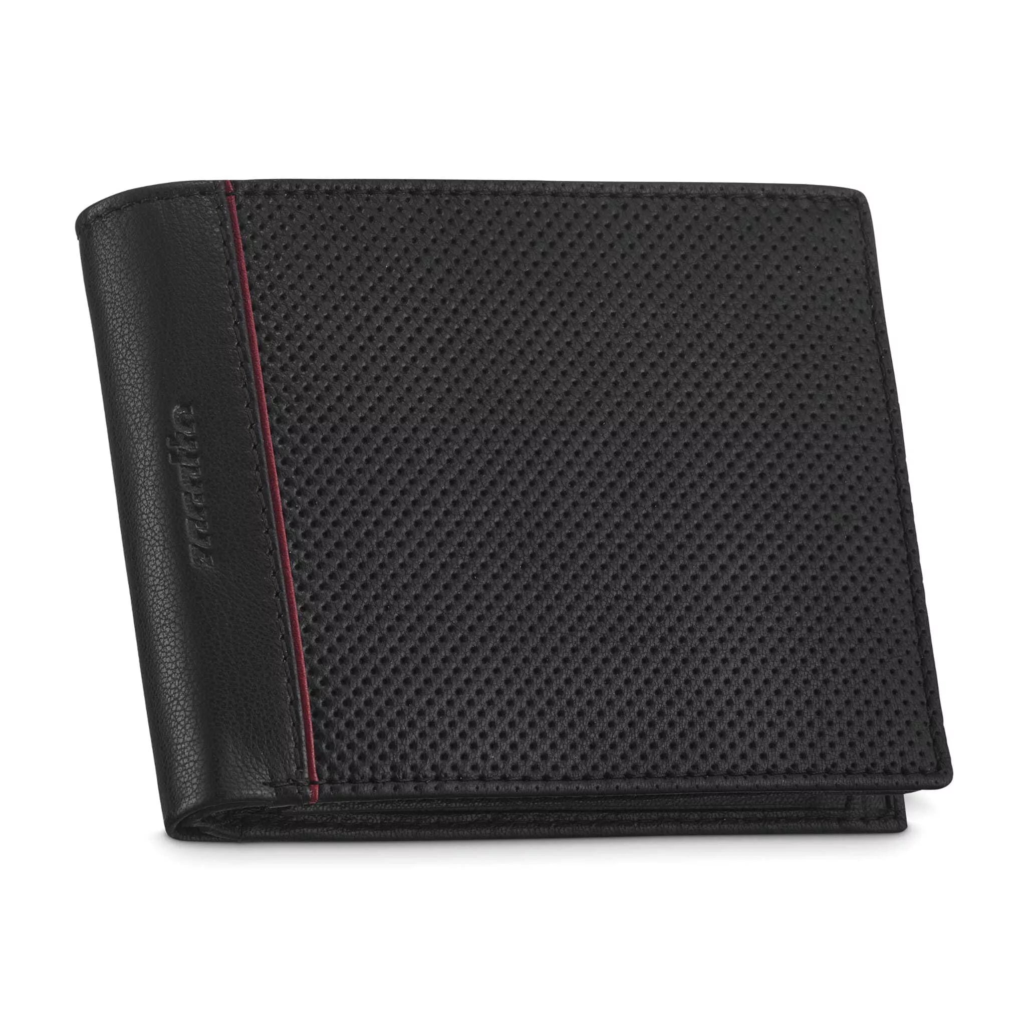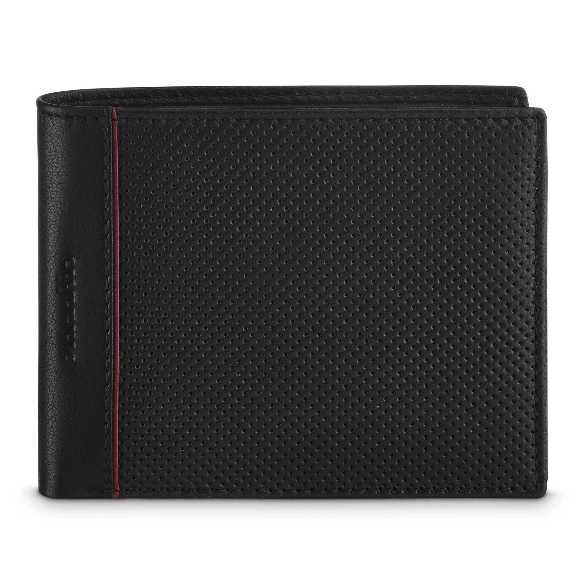 RFID card protection: yes Partitions: 7 card slots. 3 document slots. 1 coin pocket with zipper. 3 document pockets. 2 bill pockets. COMFORTABLE, CLASSIC
