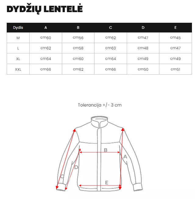 Dydžių lentelę rasite nuotraukų galerijoje.