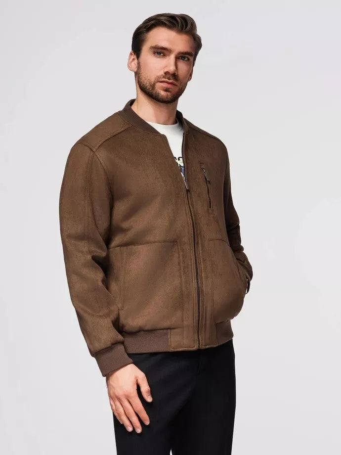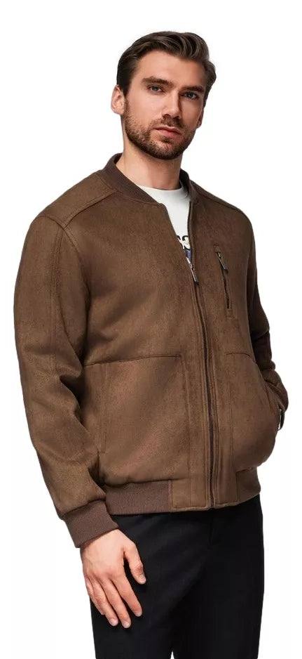Made of a soft suede-like material, it gives it a unique elegance. The jacket fastens with a zipper, has two spacious side pockets and one vertical zippered pocket in the chest area, which is convenient for storing small items. The cuffs and bottom are finished with an elastic band so that the garment fits well and maintains its shape.
