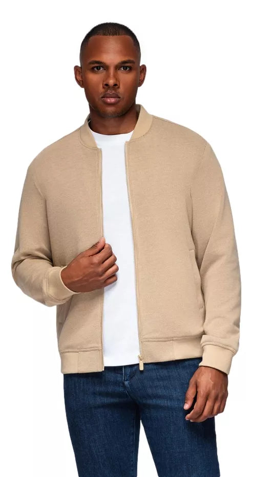 Subtle, modern and carefully crafted, the Quintessence bomber jacket is designed for men who value a combination of functionality and refined style. The technical fabric and unique weave give the overall look a distinctive touch, while subtle accessories such as the logo patch on the back complete the minimalist look. This model will be perfect for both urban style and as a light jacket in the transitional season. The collar, sleeves and bottom of this jacket have elastic seams. There are two side pockets + one Material: outer material: 80% viscose, 20% polyester lining: 100% polyester Model height: 185 cm. Model wears size M.