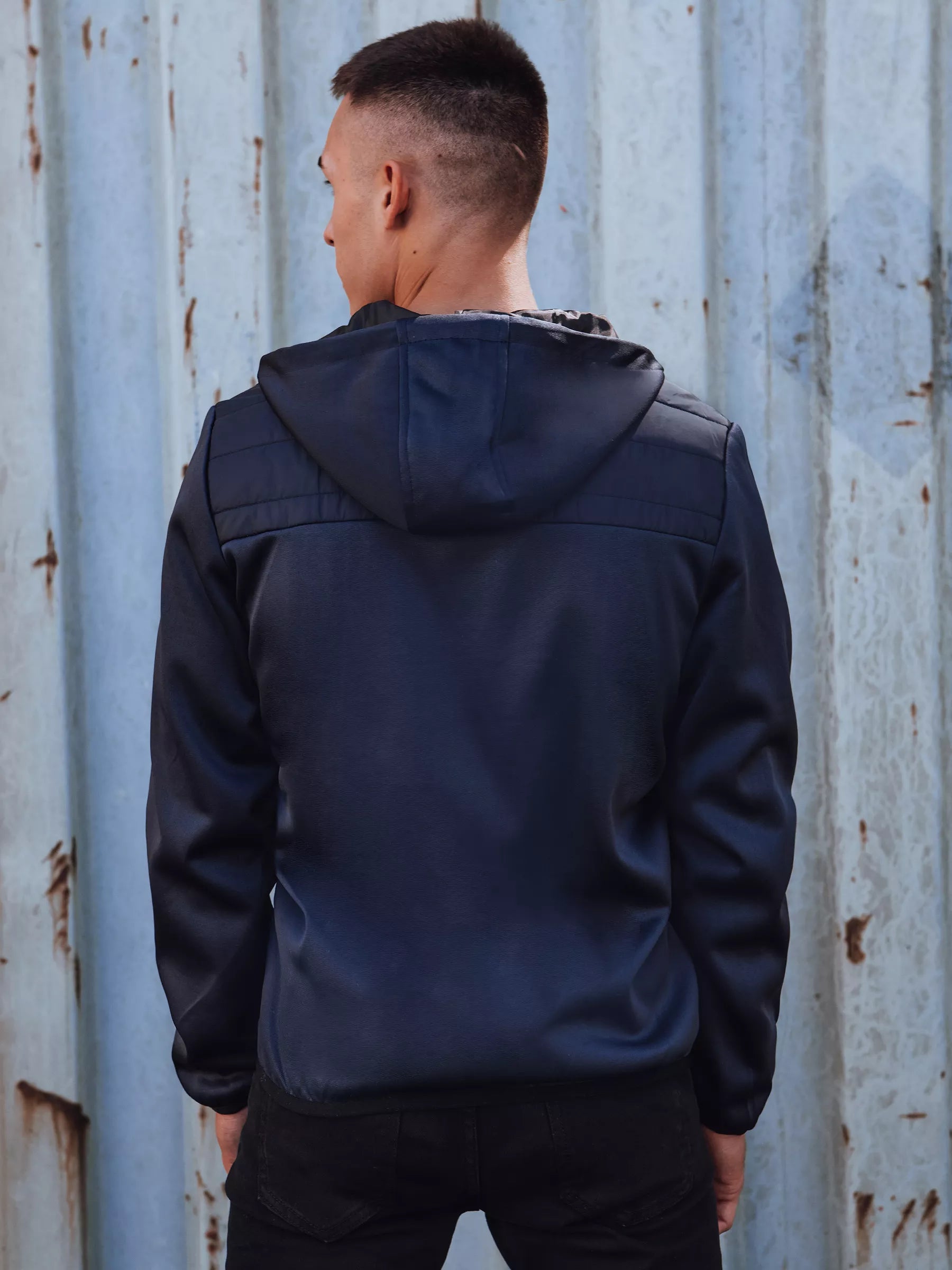 Men's quilted spring/autumn jacket with a hood is a great choice for colder days. The zipper closure guarantees ease of use, and the double-layer hood, adjustable with drawstrings, protects against wind and rain. Practical, zippered external pockets allow you to safely store small items. The bottom part and sleeves with elastic trim ensure a perfect fit and comfort of wear. This is an indispensable element of men's wardrobe in every season.