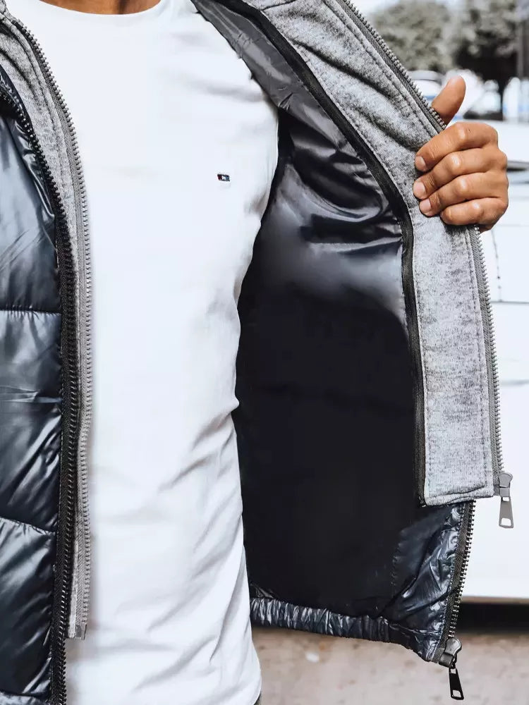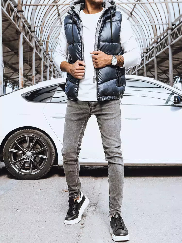 Men's quilted vest. The vest is fastened with a zipper. Two external pockets are fastened with a zipper.