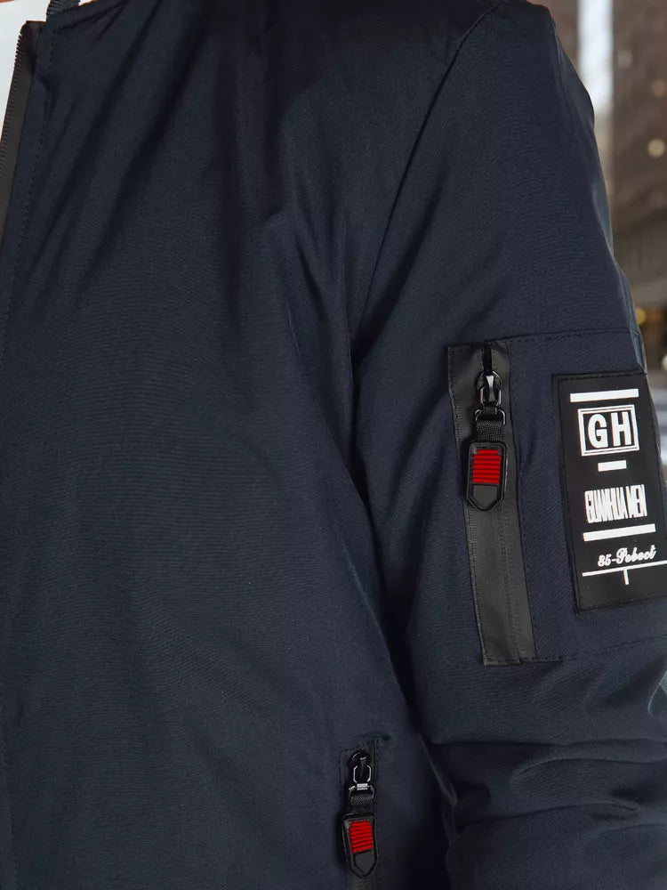 Lightweight men's jacket, perfect for transitional seasons. Model with a zipper, without a hood, with elastic cuffs on the sleeves and bottom. Has three external pockets and one internal. Subtle padding provides comfort when wearing. It is perfect for urban style.