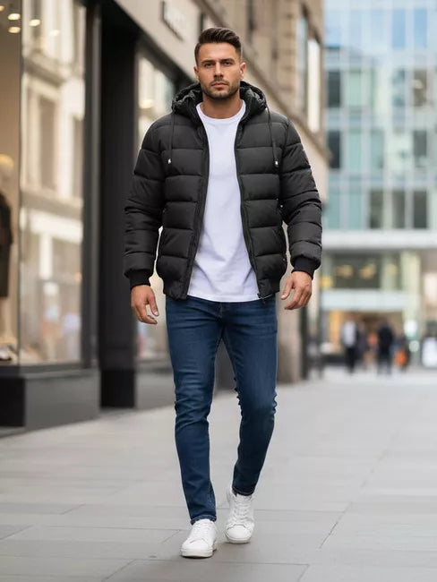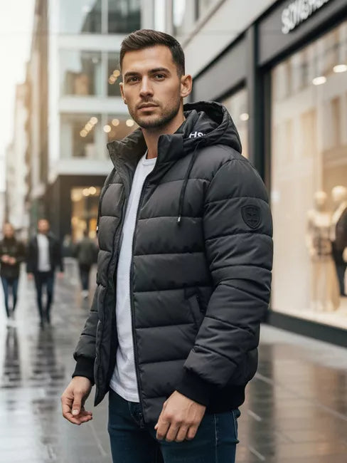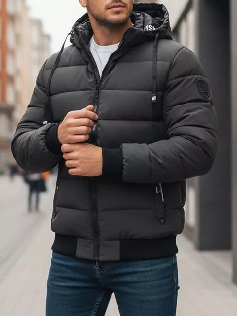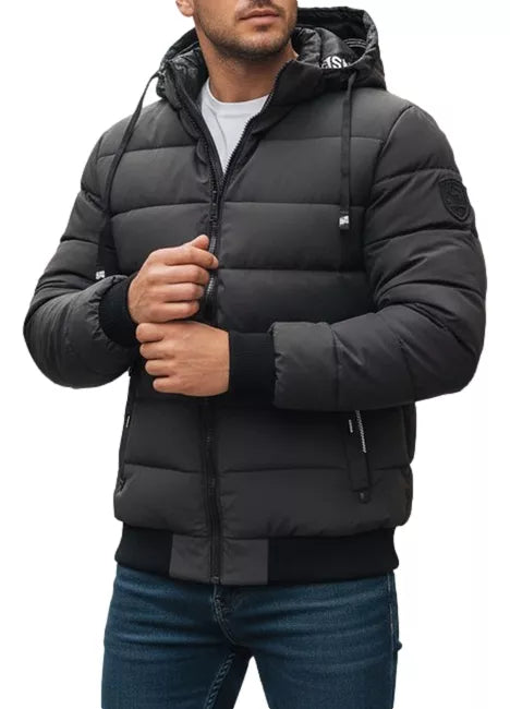 A modern men's jacket with a quilted structure, perfect for cooler days. Lightweight but warm thanks to the sturdy lining and practical hood. The TX5093 model features a fitted cut and contrasting cuffs for comfort and sporty style. This jacket is a great choice for the autumn and winter seasons. The combination of functionality and style allows it to be worn every day. The removable hood, elastic cuffs and a convenient zipper with press studs ensure comfort and protection from the cold. The universal gray color easily matches various clothing combinations.