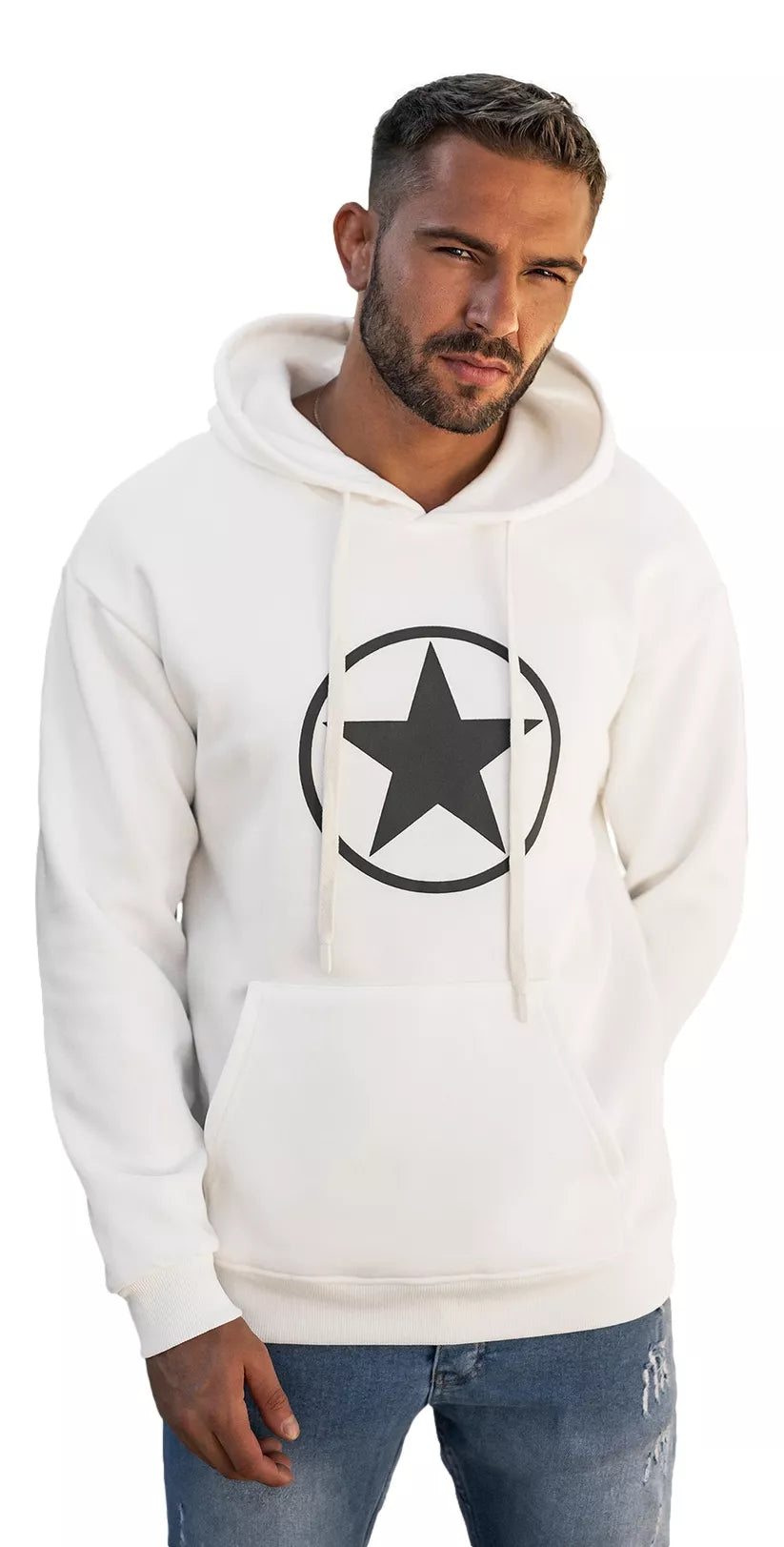 Men's hoodie. Made of soft and pleasant fabric, ensuring comfort and convenience during everyday wear. Star symbol on the front, which gives a modern and exclusive style. The hoodie has a practical front kangaroo pocket and adjustable hood drawstrings. Elastic cuffs and hem guarantee a good fit. A stylish and versatile choice for both leisure and urban style combinations - goes well with jeans or sweatpants.