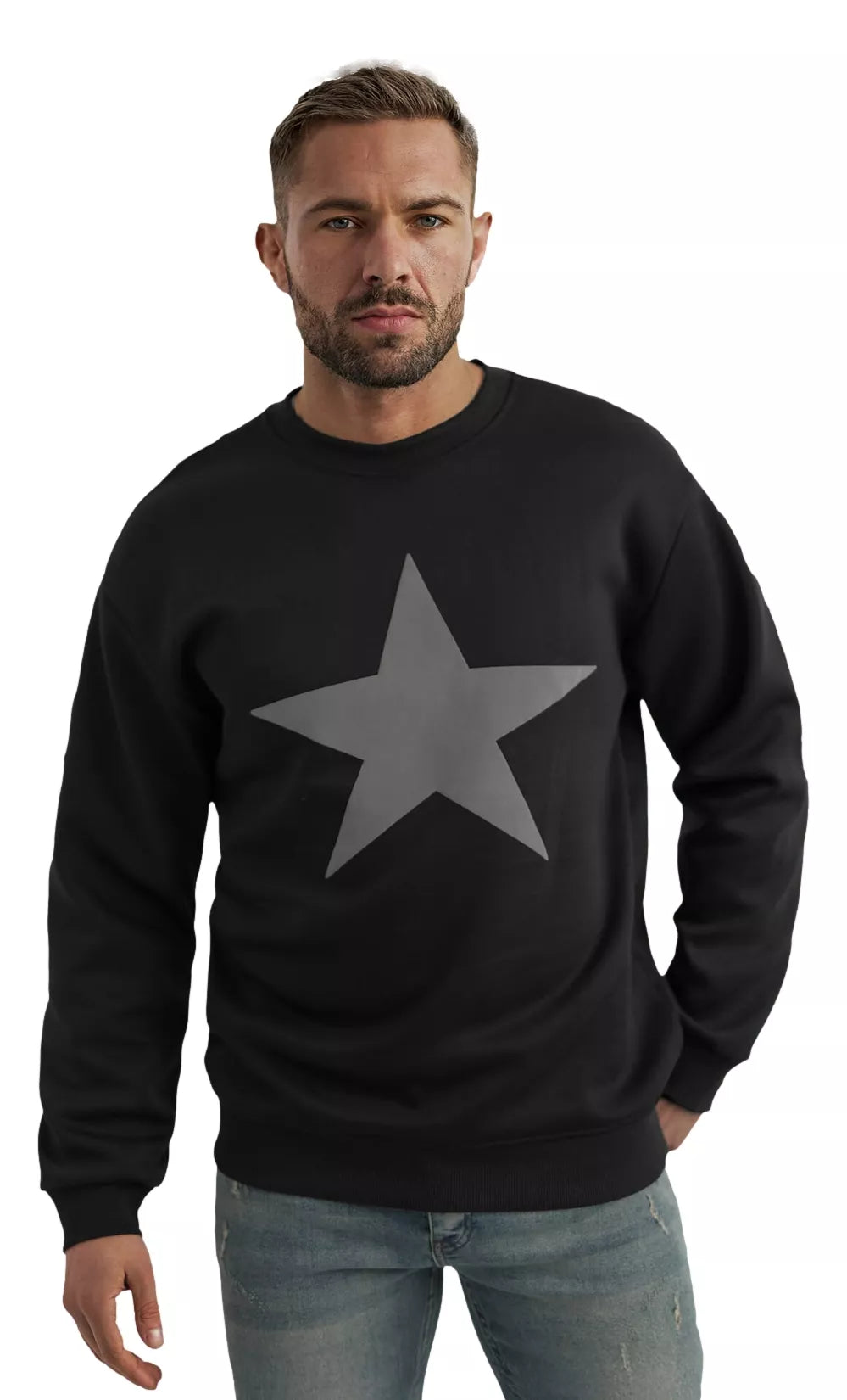 A modern and comfortable men's sweater with a star motif is a combination of style and comfort in one. The unique minimalist design with a large star symbol on the front gives this model a character and urban style expression.
