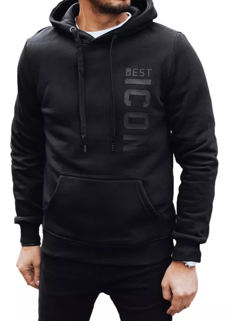 This men's sweater with a minimalist pattern perfectly combines comfort and modern design. Made of soft cotton jersey with added polyester, it ensures comfort all day long. The lining is fleece, which effectively retains heat and is soft to the touch. The matte "BEST ICON" pattern emphasizes the trendy, urban character of the sweater.