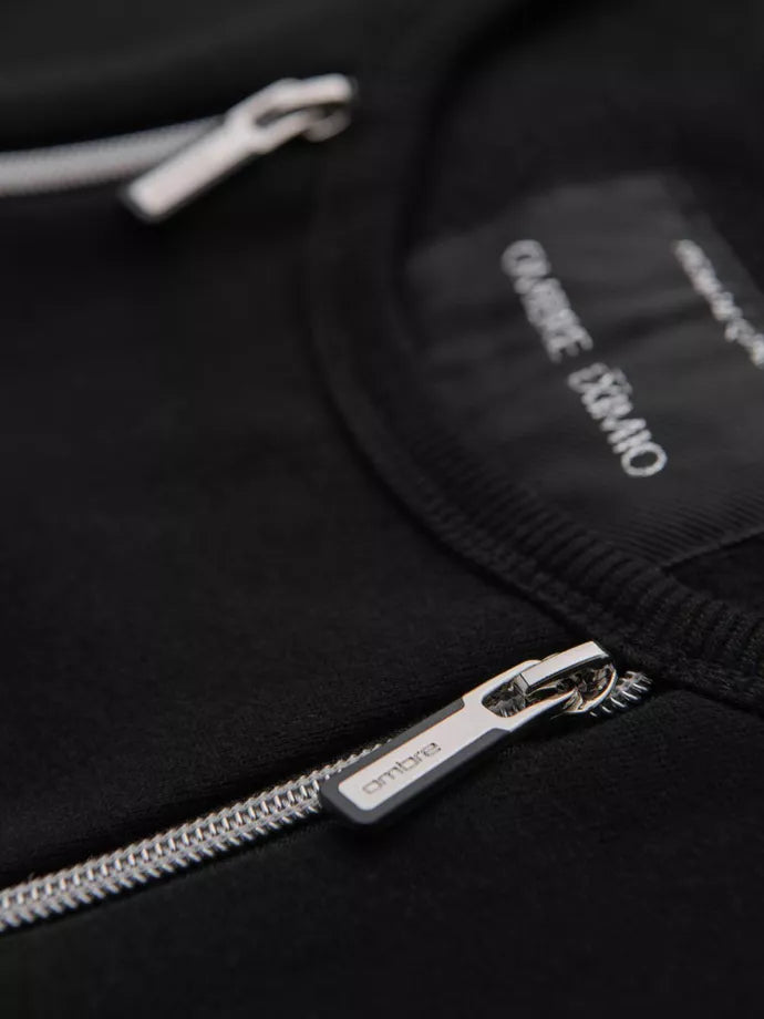 This sweater from the latest collection is a successful combination of functionality and design. The decorative silver zippers on the sweater attract the eye and give the style a modern touch. The straight cut and soft finish ensure comfort and freedom of movement. The timeless color combination makes the sweaters perfect for everyday wear.