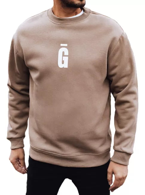This men's sweater has a minimalist round neck style with a bold print on the front and a larger motif on the back. Made from high-quality cotton knit fabric with added polyester, it is comfortable, durable and provides thermal comfort thanks to the fleece lining. The simple cut and classic finish make it a versatile accessory for everyday wear. This sweater combines comfort and simplicity with a modern twist. It's perfect for both everyday wear and weekend casual wear. Thanks to the durable material and careful manufacturing process, it will last for many seasons. Composition: 65% cotton, 35% polyester.
