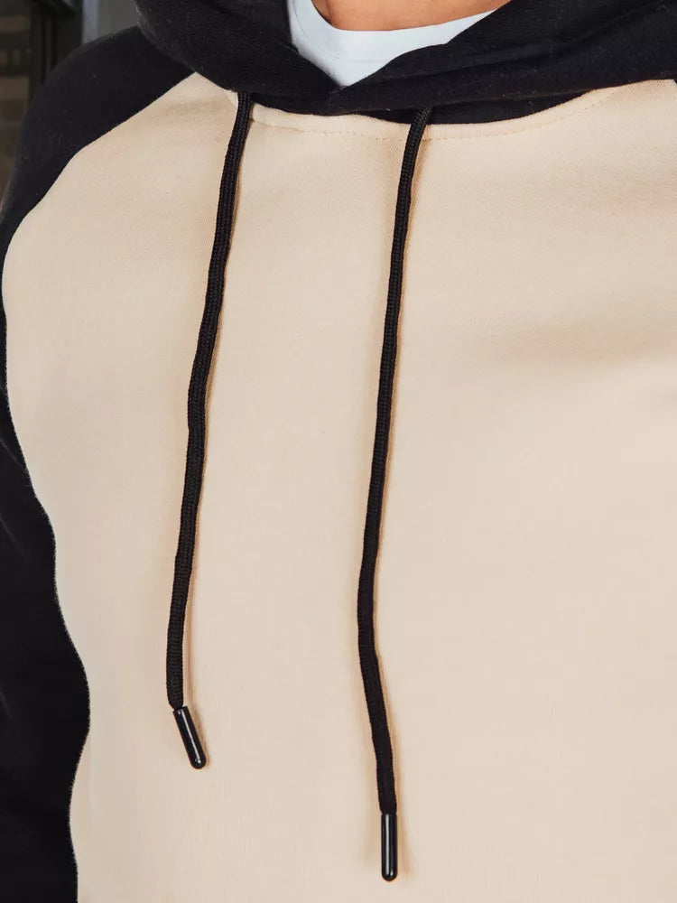 Comfortable men's sweater with a practical hood and a drawstring adjustable hood. The loose cut ensures comfort, and the kangaroo pocket adds functionality. The drawstrings ensure a good fit to the figure. A great choice for cooler days, matching many casual clothing options.